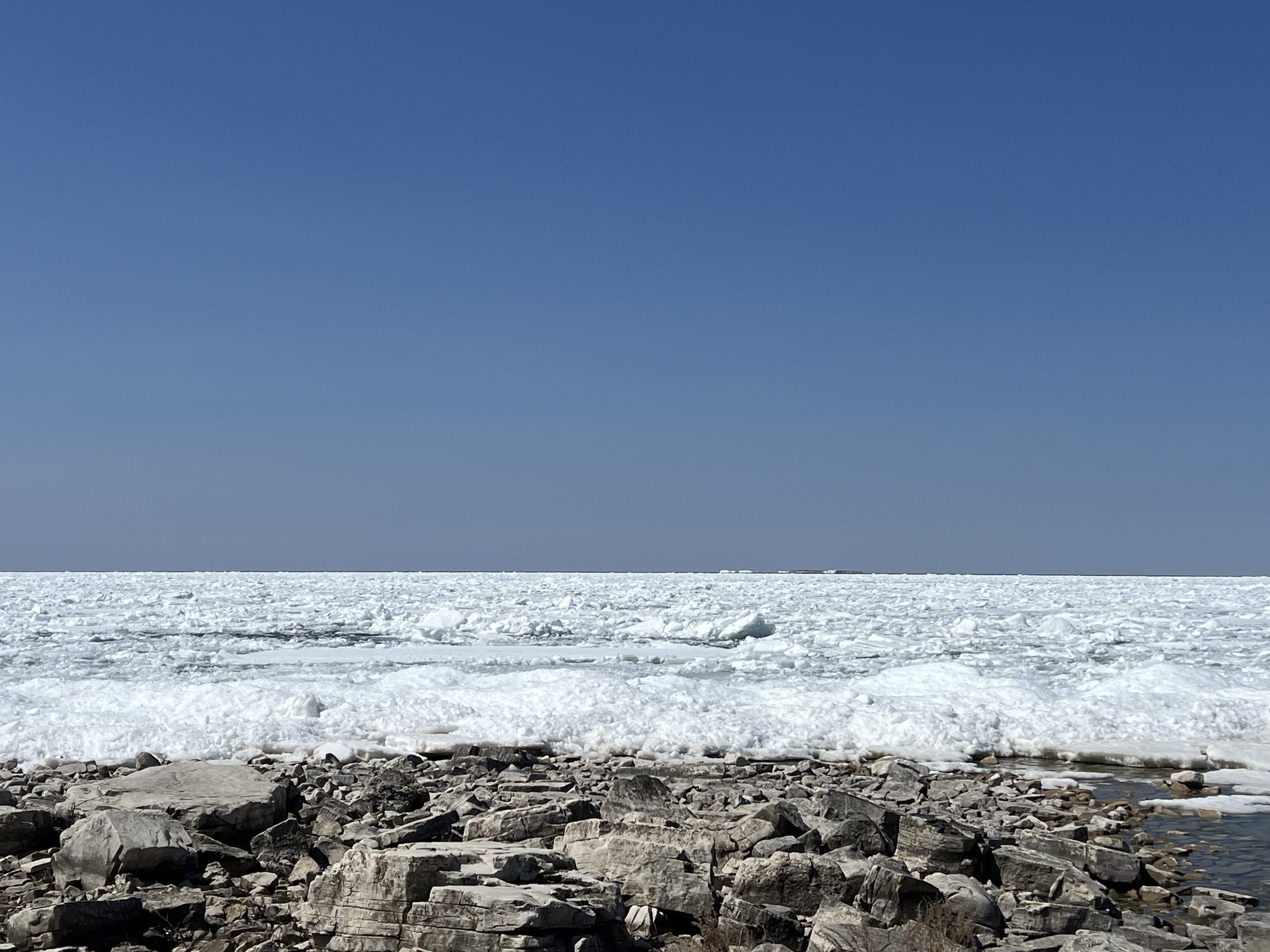 Two weeks has been enough time for me to see most of the ice and snow melt in the bay that’s a short jog downhill from the house.